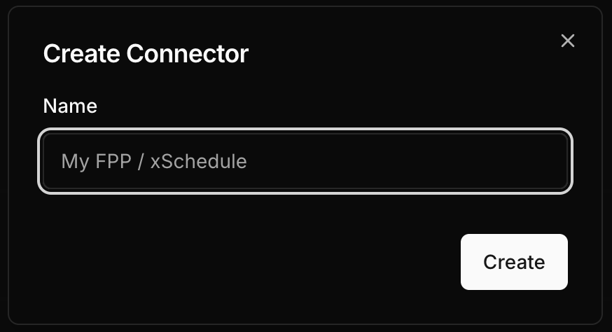 Next, go to the Connector section. Click on "Create new connector" to generate a new connector for your display. The name is for your own reference only and is not shown to viewers. This connector will represent your FPP device to PulseMesh.